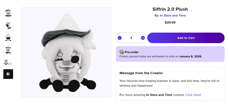 *so, like, 4 months i think? maybe 6. and then. another plushie will probably take over. siffrin 1.0? loop? i don't know yet. which one do you want