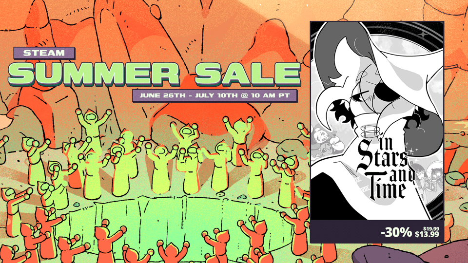 do you keep hearing about this black and white timeloop game that i made? that's In Stars and Time and it's on sale!!!