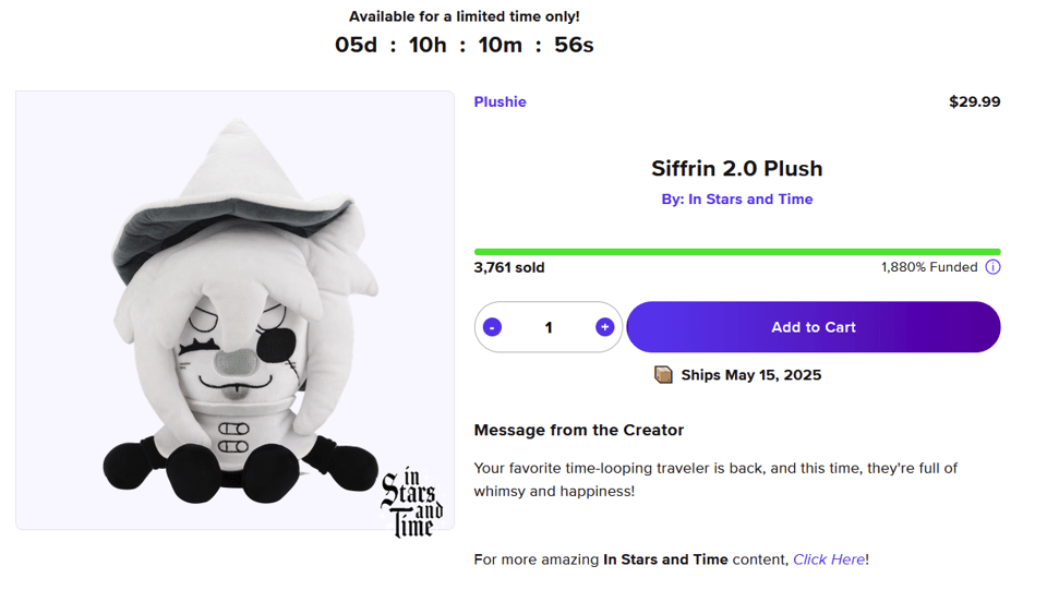 today should’ve also been the last day of the Siffrin plushie run, but we’ve added a couple of days… For a little surprise… (it’s a sticker. there will be a sticker for every person who bought a siffrin!!!)