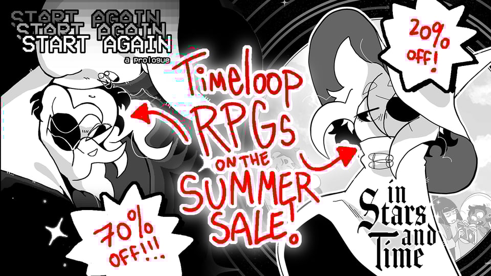 This is a real quick n dirty email to tell you Steam Summer Sale has started, and my two timeloop RPGs START AGAIN: a prologue and In Stars and Time are on sale!!!