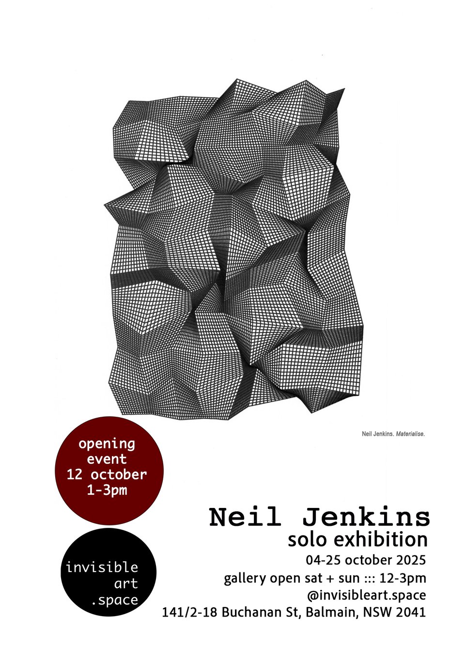 Hi everyone, welcome and thanks for subscribing to this email list. Here’s the upcoming events at invisible art space and a couple in the Southern Highlands for October - December 2025.