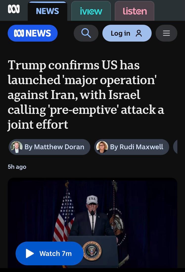 The problem is that the ABC is simply quoting two misleading statements and putting them in the headline. The US and Israel have unilaterally attacked Iran, it’s an unprovoked attack, it’s war. It’s not pre-emptive by any measure. Which, again, it’s illegal anyway.