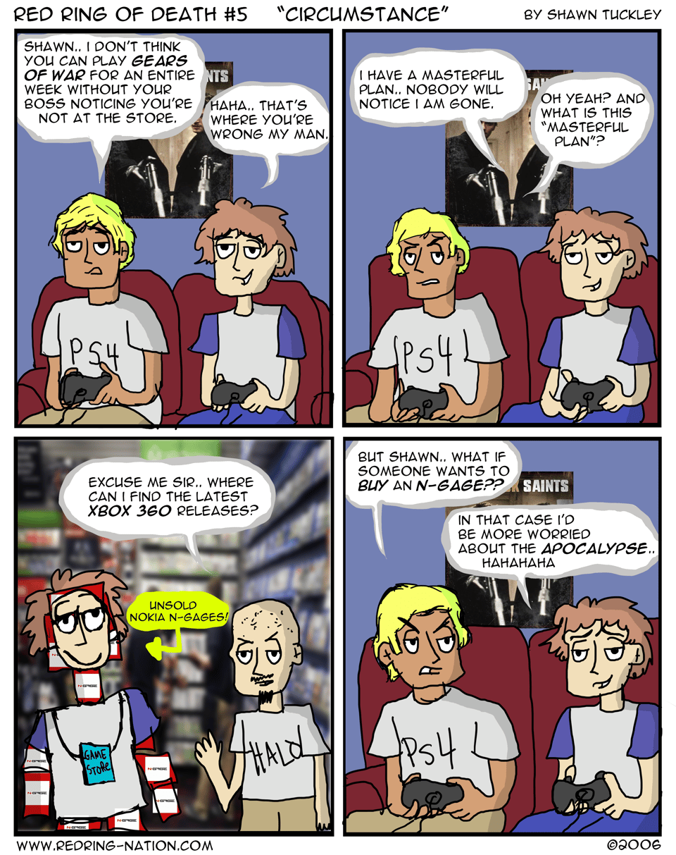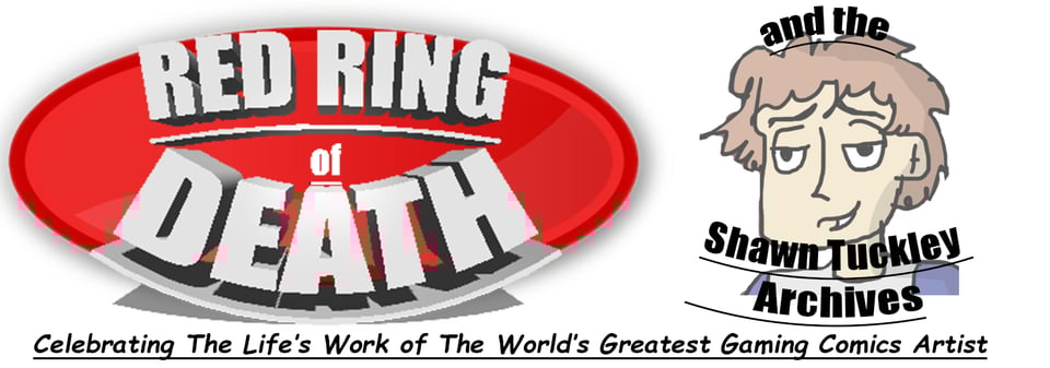 Over the following months, I started making actual full Red Ring comic strips, and I had so much fun with them that I decided to upgrade from my sketchbook to full blown digital color. At this point I felt the need to sign a name on the comic, and it didn’t feel right to use my own name. So, without much thought, I threw the name “Shawn Tuckley” on there. I figured it would be my “gamer comic pseudonym” or something. An alter ego. Sure! Why not. I’m only gonna make two or three more of these comics anyway. It doesn’t matter. The gimmick’s gonna run dry and I’m gonna get tired of this and move on to making real comics again.