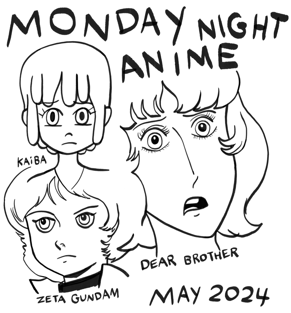 I try to have some variety in the shows I’m watching, so here we have a surreal short little series followed by a classic shoujo and a classic shonen. A good mix of chaotic girl energy and chaotic boy energy in there. Kaiba is a short series, so I’ll be able to put something else in the lineup shortly to keep things fresh.
