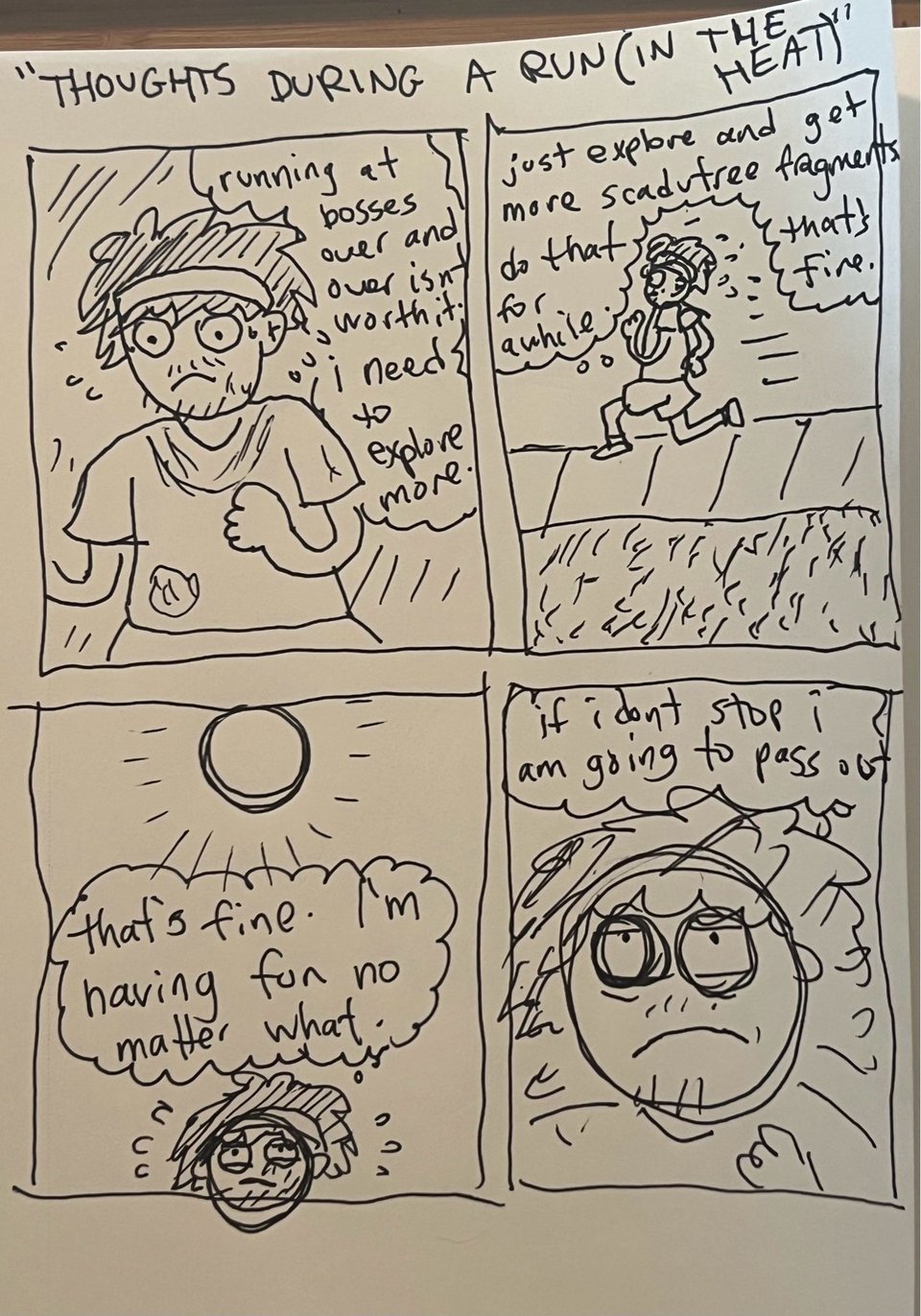 I’ve also shied away from making autobiographical comics lately, so making a quick little one about my sweltering runs was nice. And it was heartwarming to see so many people not only posting their own little comics, many of which never actually drew before. And some of them are continuing to make more!