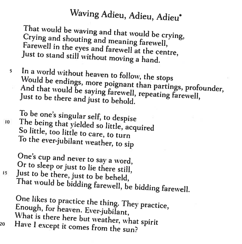 But what, for the avoidant consciousness, is the alternative? What would it be to face up rightly or authentically to that moment of saying goodbye? Goodbye remains a question, and must remain an uncomfortable one, after the hope of a transparently effective or ritualized form, something like the sign-off of a letter. We know somehow that everyone is dodging or shirking the work of mourning, of saying goodbye, yet no one knows how to set themselves to it, and least of all me.