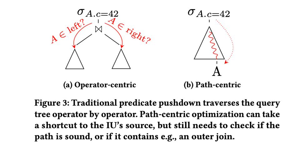 Asymptotically Better Query Optimization Using Indexed Algebra suggests another model for thinking about this kind of non-local reasoning. Instead of the fundamental unit being operators, and communication between operators, they propose that the fundamental unit of reasoning should be the path that a column takes through the tree: