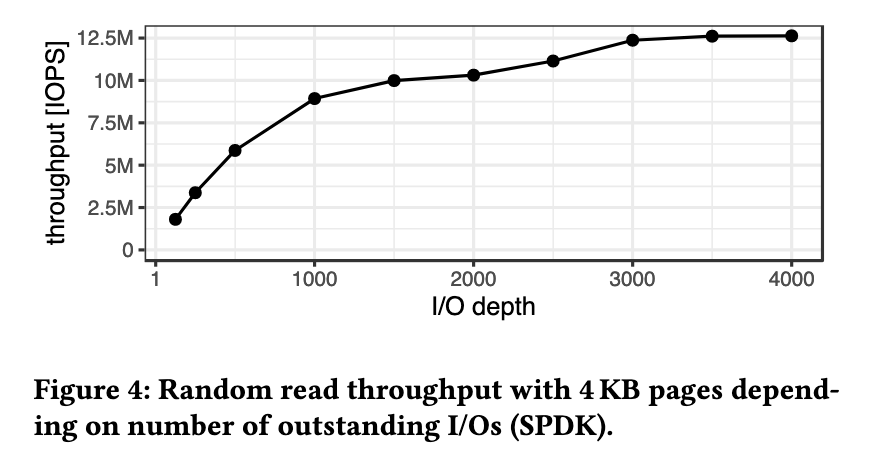 I should emphasize that the drives being used here are extremely high end. They test using an array of 8 SSDs each providing 1.5 million IOPS, for a total of 12 million. This is a lot. According to the AWS docs I was able to find, that's roughly four of the highest end storage-optimized instance they offer. For the situations that most people find themselves in, a good comparison for this paper is probably Staring Into The Abyss, to the extent that it almost borders on thought experiment.