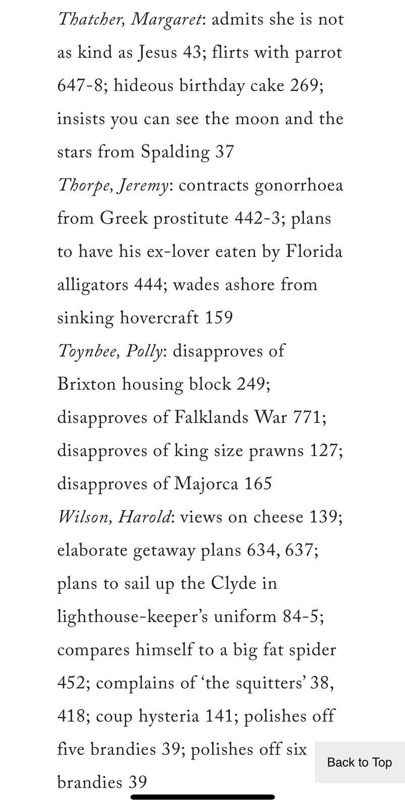 Ted Heath was the Tory party leader (Britain's right-wing party) who was Prime Minister at the start of 1974. After elections were held that February, Heath did not have enough seats to form a government. So he had to form a coalition government with the third place party, the Liberals. The Liberal party leader was... Jeremy Thorpe, who according to the index once made plans to have his ex-lover killed by alligators in Florida.