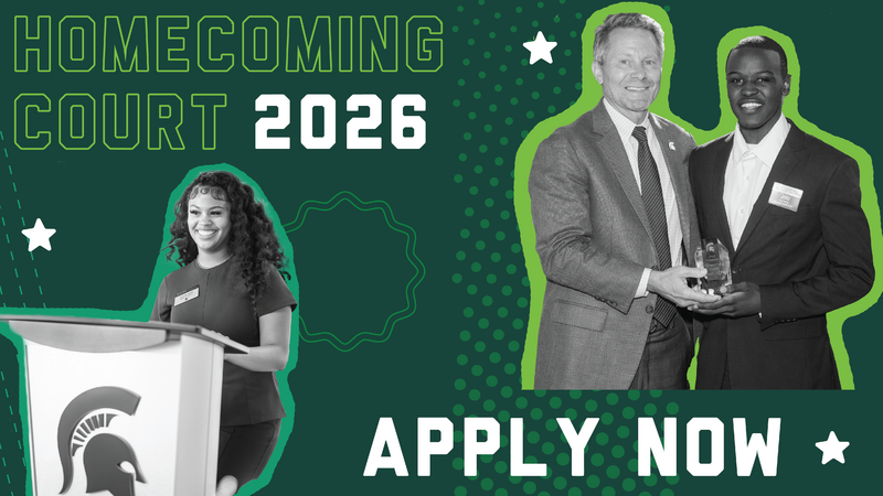 Representing MSU on Homecoming Court is considered one of the highest honors for MSU seniors. Each year, 10-12 students are selected based on qualities of leadership, spirit, integrity and achievement. Learn more and apply by Jan. 18 via Qualtrics.