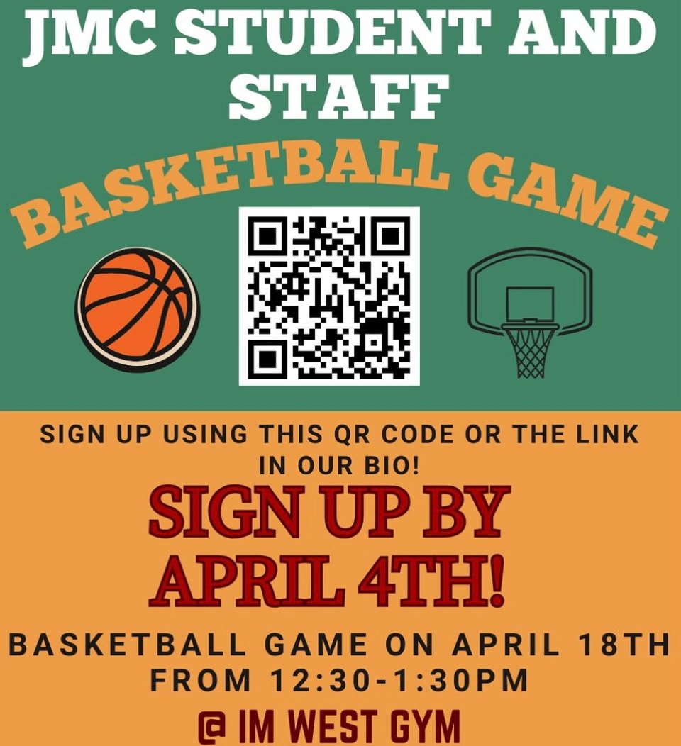 It’s time for the annual JMC Staff and Students Basketball Game! The game will be on Friday, April 18, from 12:30 to 1:30 p.m. in the Main Gym of IM West. If you are interested in playing, please fill out this Google Form by April 4. Even if you don’t play, we would love to see you there to cheer on your fellow JMC community members. Please feel free to reach out to tothtayl@msu.edu if you have any questions or concerns!