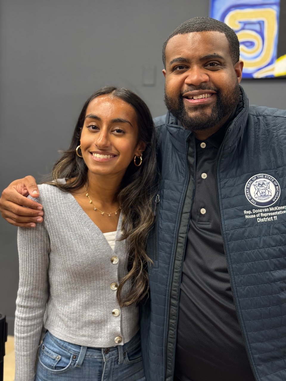 “I am currently interning with Crane Consulting, a democratic campaign consulting team. We have clients who are running at the local, state and federal levels, such as mayors, state representatives and congressional candidates. We handle their campaign finances and do other support tasks such as donor research, social media graphics, staffing individual candidates and helping out at fundraising events. Above is a picture of me with Donovan McKinney, who is running for congressional office out of Michigan’s 13th district.”