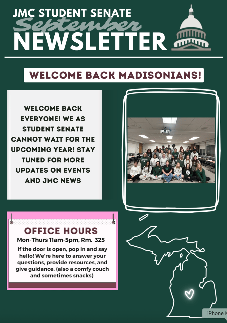 Read JMC Student Senate’s September Newsletter via Canva