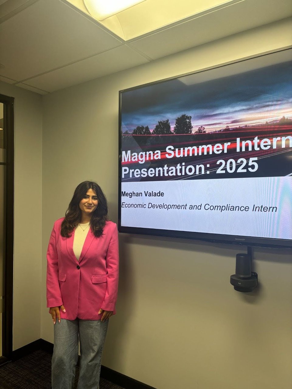 “This summer, I interned at Magna International with the Government Affairs team, focusing on Economic Development and Compliance initiatives. Magna, a top global automotive supplier, is shaping the future of the automotive industry through their strong commitment to sustainability and innovation.
