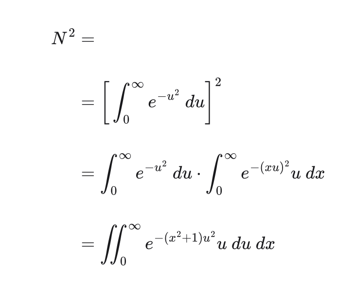 Which matches what we wanted. Splitting the double integral is made possible by Fubini's Theorem, and the evaluation of the arc-tangent can be found in a table of integrals (which I plan to publish separately).