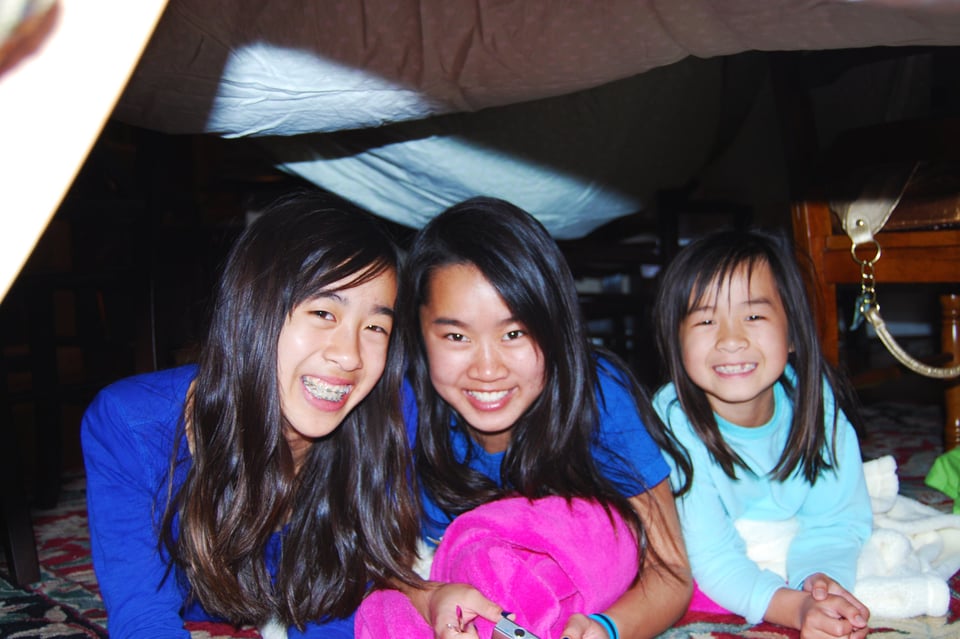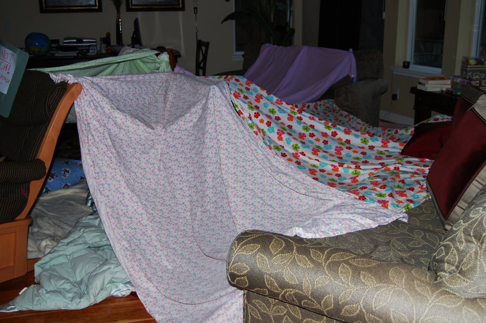 Jenny: We used to make blanket forts in the living room too, until Mom made us clean them up. We spent days in there.
