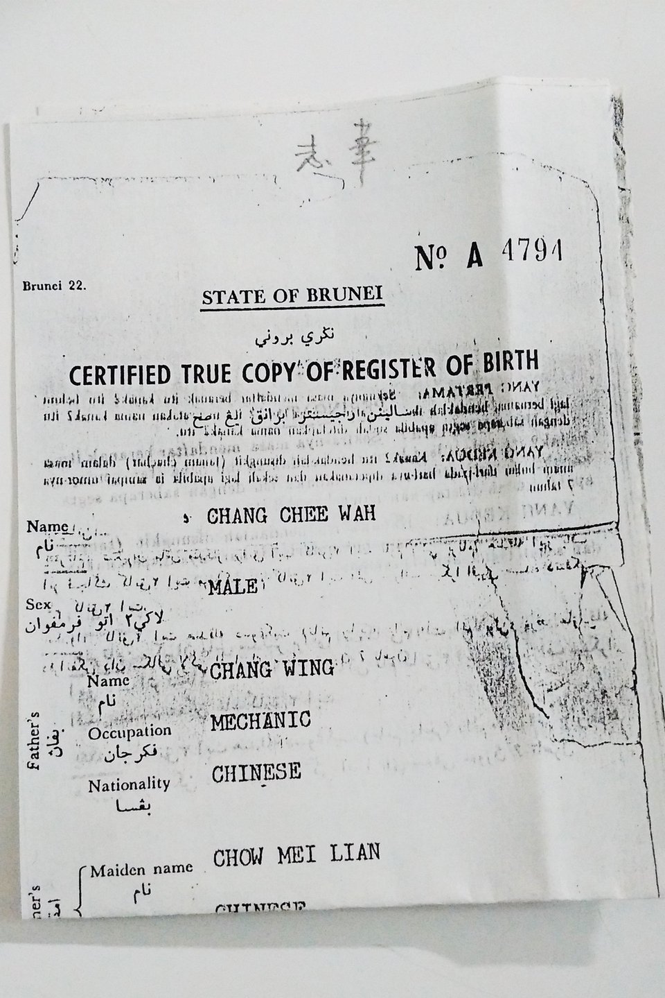 Ye Ye: 1961, Howard [my dad] was born in Brunei. [We] moved there to do construction. They used to be the houses, the small one-family houses in Brunei.