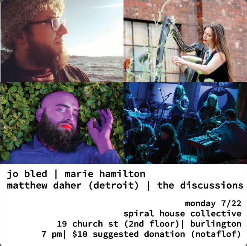 Show #2 (Monday 7/22), Spiral House Collective in Burlington VT w/Marie Hamilton, Matthew Daher (Detroit) & the Discussions
