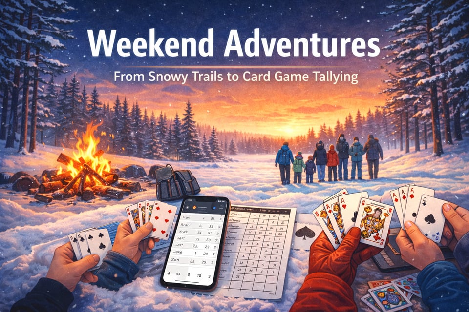 I spent the weekend with some old friends and all of our children in a tradition we call “No Moms Weekend.” It’s 7 dads, and 15 kids of varying ages all doing wintery outdoor activities like hiking, making campfires, and playing lots of games. Moms have to stay home and suffer through the peace and quiet of an empty house.