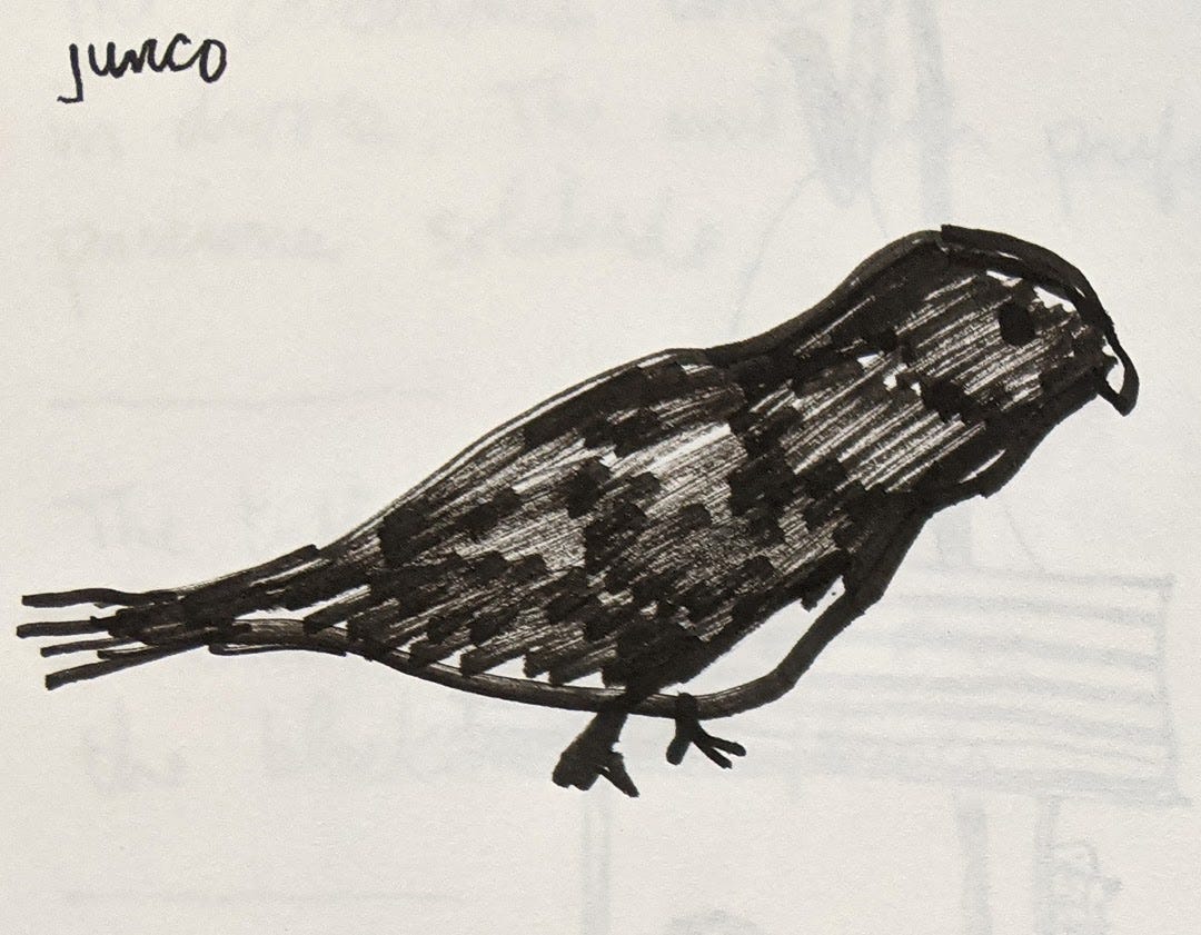 This poem, written in the tanka form, emerged in the dim light of early morning after a particularly grim yet vague dream – vague in my memory of it, anyway – while sitting in my habitual morning spot, which affords a wide view of the backyard with its bird feeders and throngs of song birds. Why did I feel nothing of this dream of death? The comfort and peace of these morning moments seem shocking in contrast to the banal horror in the dream. Outside the dreamworld, these quiet morning moments seem shocking in contrast to the waves of pain and destruction crashing around me.