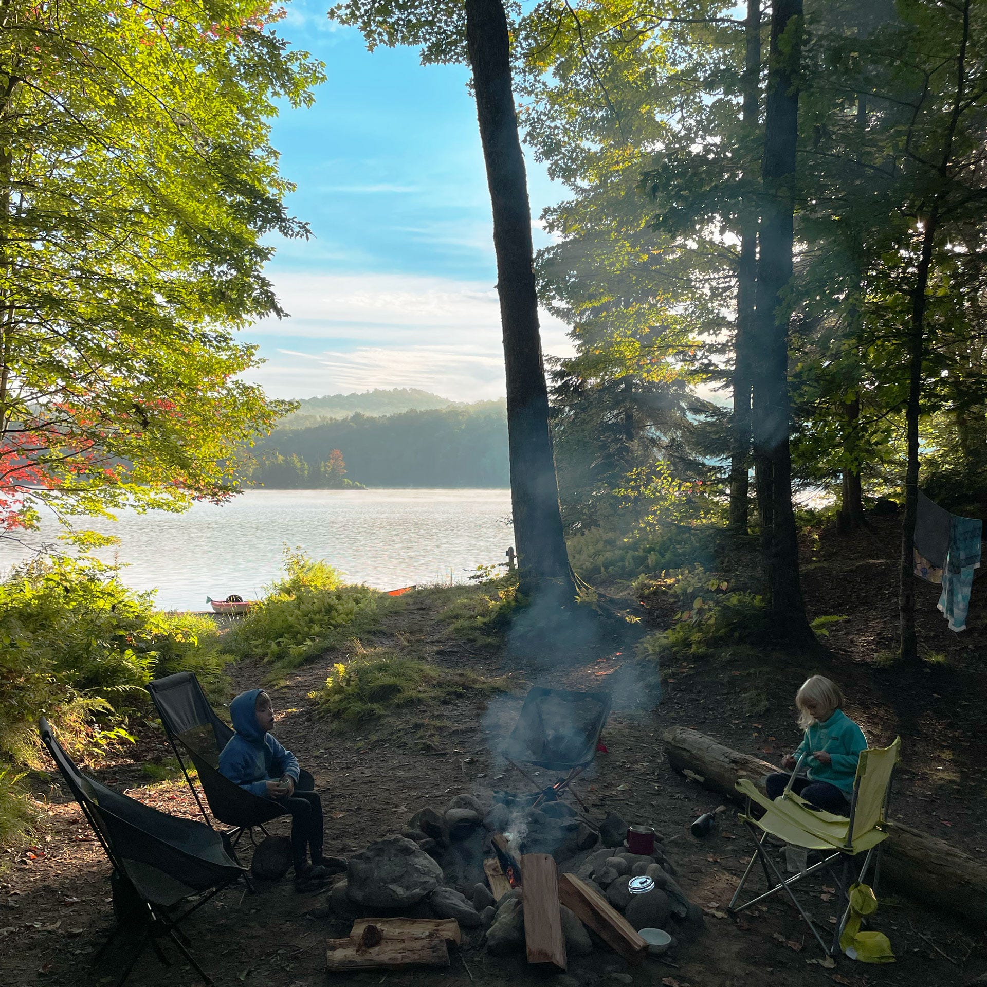 We made camp at remote site #18 on the western shore of the Green River Reservoir in Lamoille County, Vermont. An hour earlier, we had off-loaded our gear and embarked on a leisurely paddle of about 3/4 mile through still waters. One canoe, one kayak, one grownup, two kids, and a small number of essentials to enjoy twenty-four hours living out of doors. Once on the glassy water, we slid gracefully out of our everyday lives into a temporary solitude, the surrounding forest buffering our bodies against the designs of others who might desire our attention and time. The landscape enveloped us with a full spectrum of sensory delights. I breathed deeply, let my fingertips trail in the water, unfocused my eyes on the dappled reflection of moving light. Later, floating on the surface of the lake, the warmth of the end-of-summer sun above and the coolness of the water below, our bodies hung in perfect equilibrium, weightless and boundless. When we dozed off later that evening, loons called to each other across the darkness, their wails haunting our dreams and their tremolo calls drawing us into half-sleep, alternately.