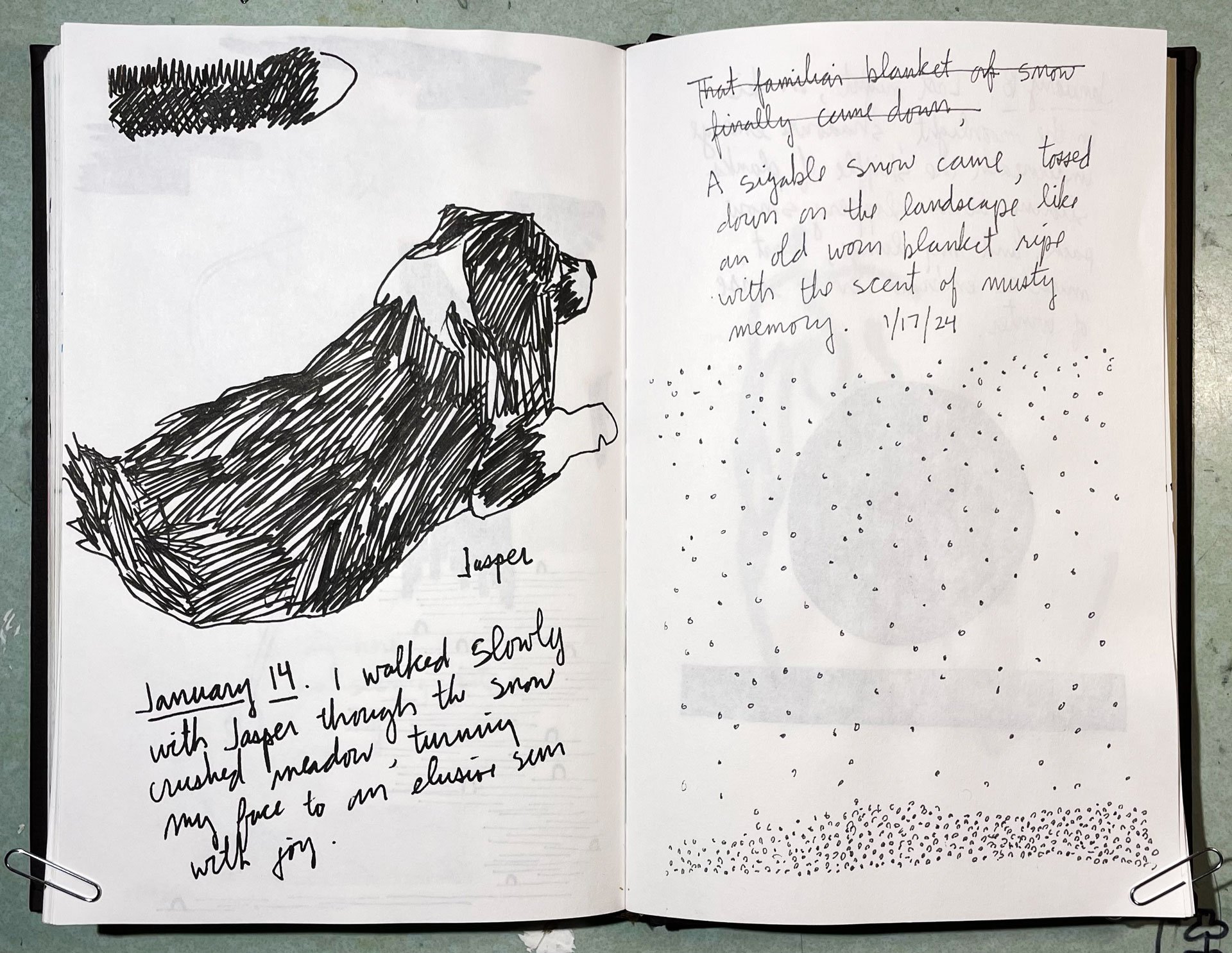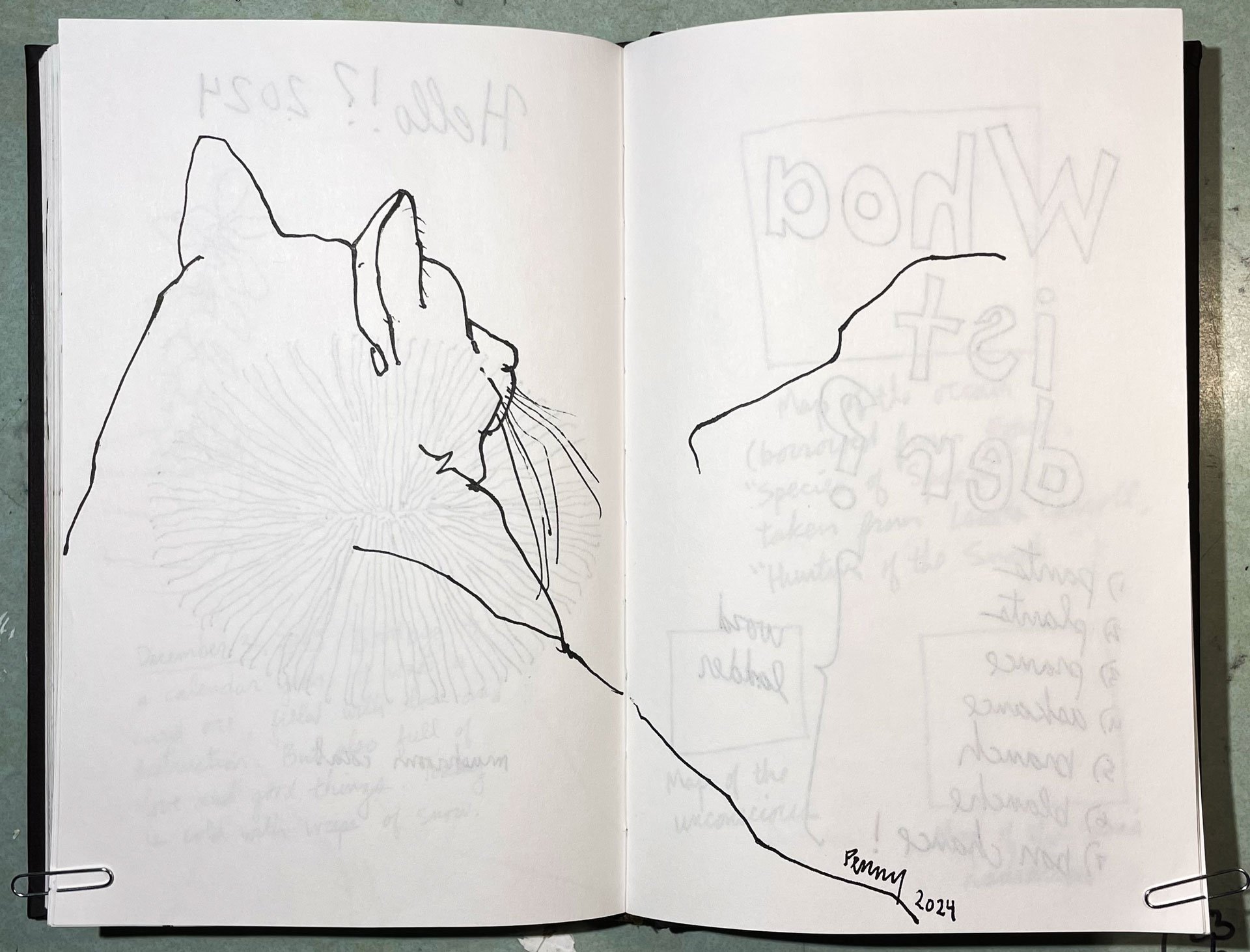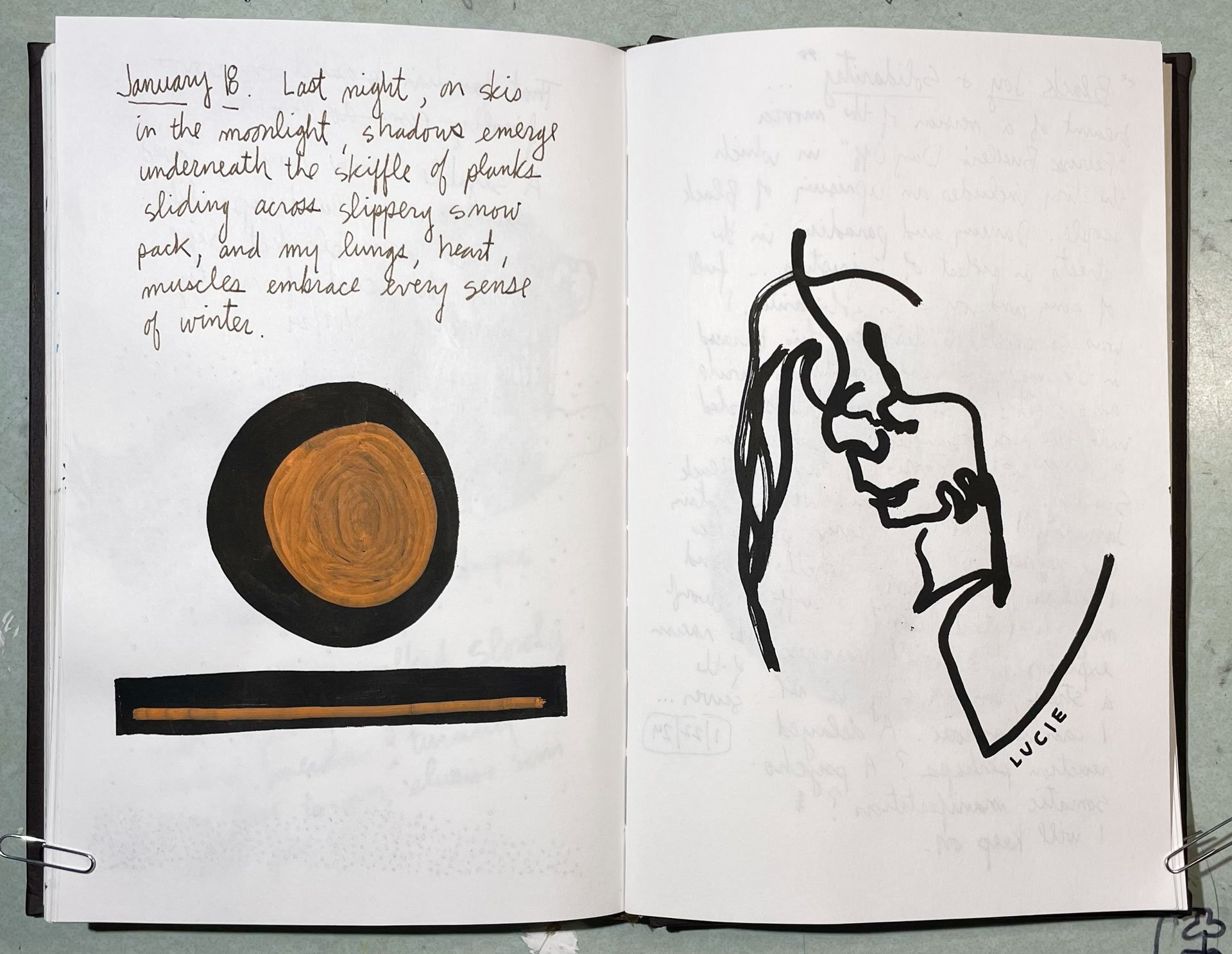 Note: Another post in a series of recent pages taken from my sketchbook, with a few words draped around the edges for context or color or play.