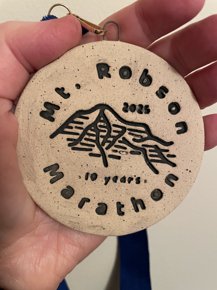 Above is a photo of the beautiful hand-made clay medal that we were handing out. They were created by a local potter (who is also a nurse that works at the Valemount Health Centre). Luckily, there were some extras, so at the Volunteer Dinner that happened a few weeks later we were able to take one of them as a souvenir.
