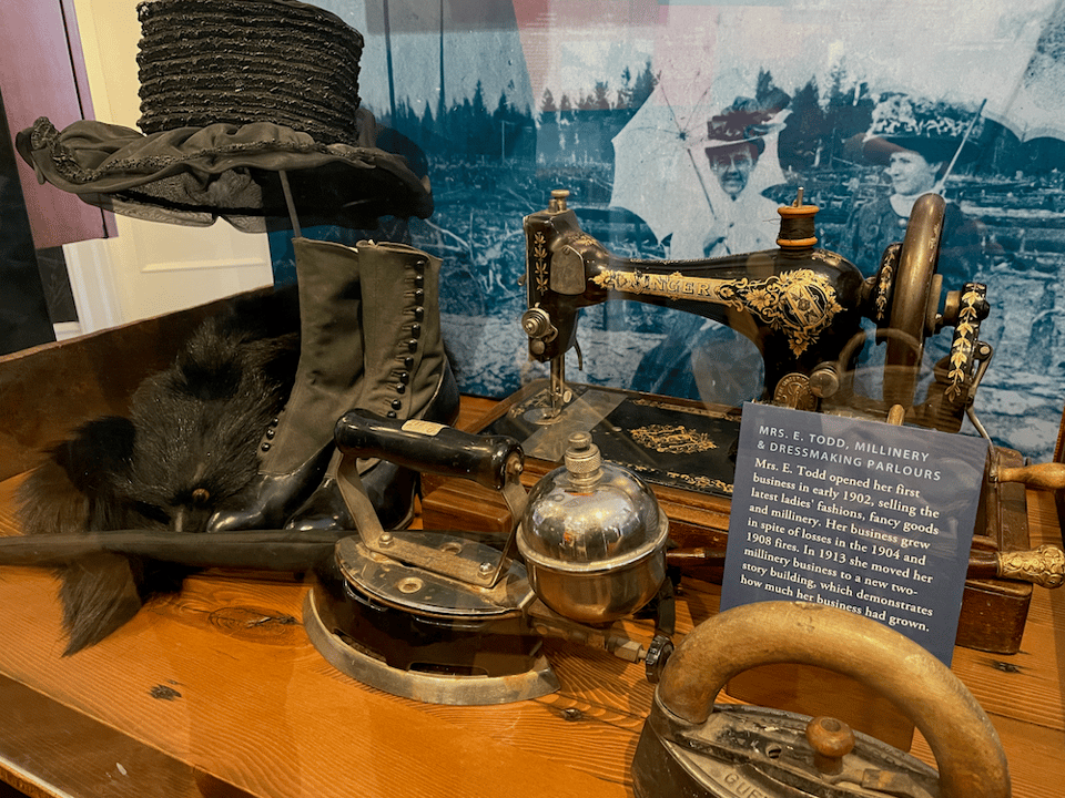 This legend is one of the things we read about in the Fernie Museum. It is packed to the rafters with things to look at, including this story of Mrs. Todd, Milliner and Dressmaker.