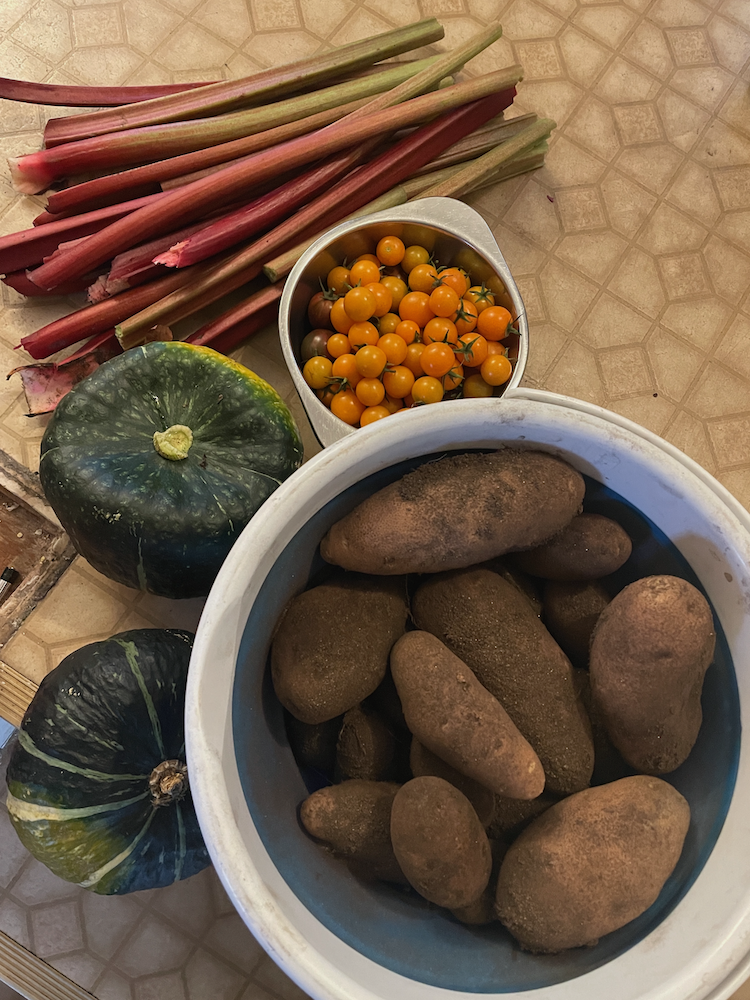 We also had 40 pints of frozen raspberries and from later in the month there were squash, potatoes and rhubarb. The tomatoes came quite late, but eventually made an appearance.