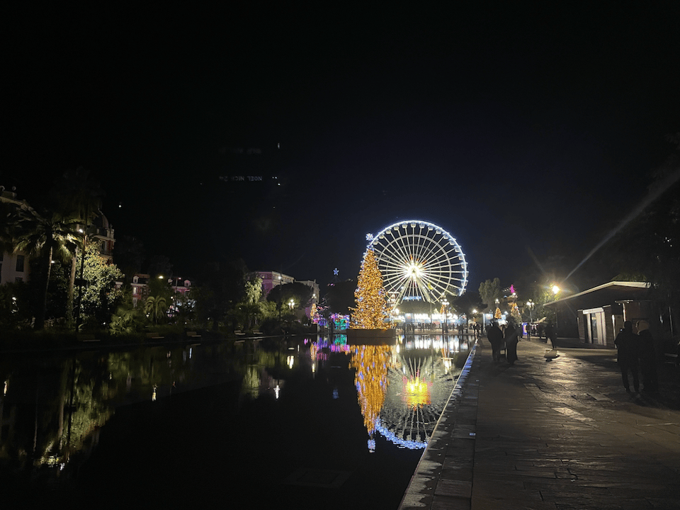 The city was busy with people visiting for the holiday season. While it wasn’t the usual crush of people on the beach, there was still a steady crowd wandering along the Promenade des Anglais (the broad walkway that follows along the beach), crowding the streets in the Old Town and filling the “Noël à Nice” Christmas Market in Place Messéna.
