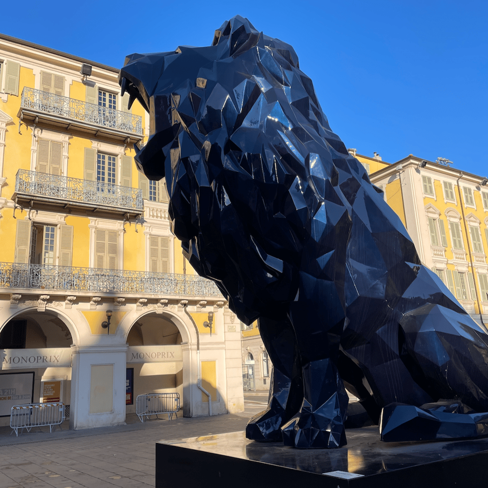 It’s a new sculpture of a lion by French artist Richard Orlinski, who is not without controversy, but I enjoyed how the faceted surface reflected the light from the sun at different times of day.