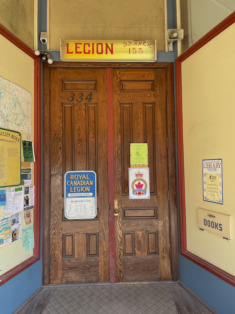 There was a pamphlet they gave out at the museum that is a walking tour of the town and tells you about the history of all the buildings, including the building that now houses the Legion. When the smelter was closed this former furniture store (and funeral parlour) was abandoned and in 1942 it became “Building No. 3” and housed interred Japanese Canadians.