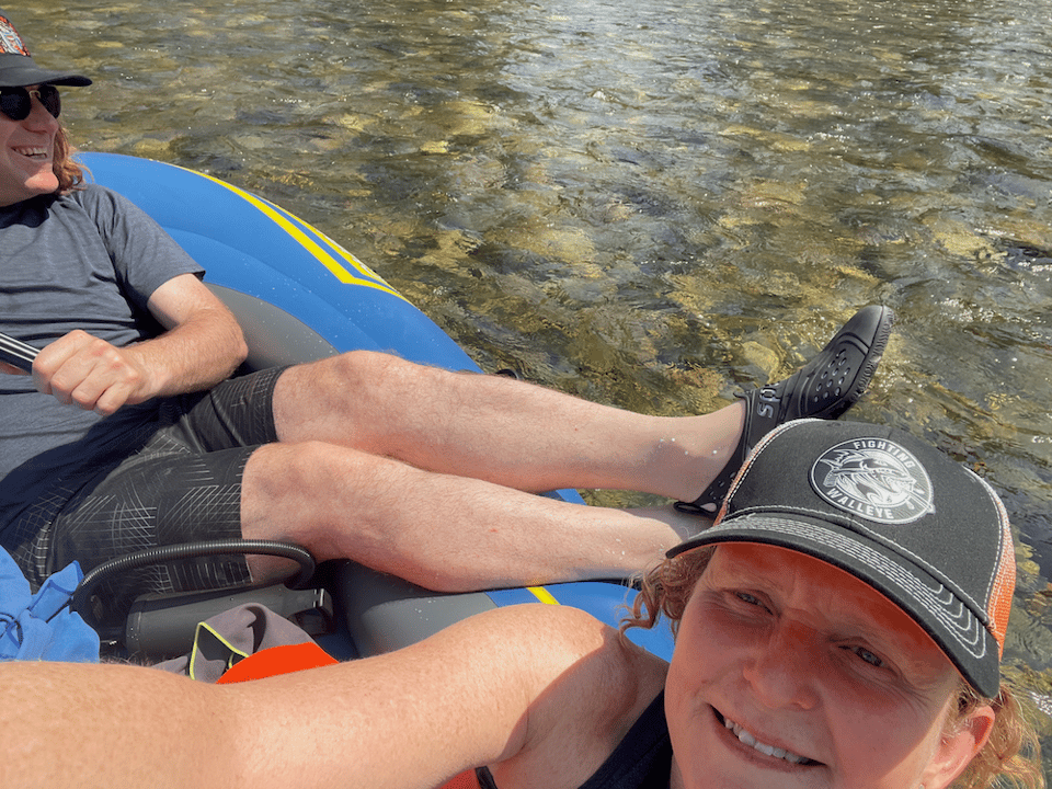 As you can imagine from its name, the Kettle River, ran right behind the Kettle River RV Park where we were staying. From our walks, we quickly discovered that floating down the river, in the floaty of your choice, was a thing that needed to be done. So, after buying an inflatable boat at the Hardware Store in Osoyoos, we went to the office to ask the manager of the trailer park a bunch of questions about how one gets back to the trailer park after floating away from it. In the office, someone else (Cindy) happened to be there, chatting with the manager, and before we knew it, she was in the truck with us. She directed us to where we needed to go into the river (upriver from the campground), and then she drove our truck back to the campground for us. I mean, how can you not trust someone who is on the third consecutive gold medal winning masters curling team with your truck even though you had only known them for 5 minutes.