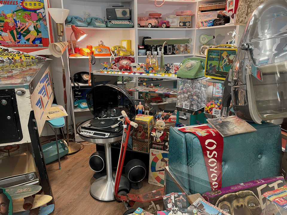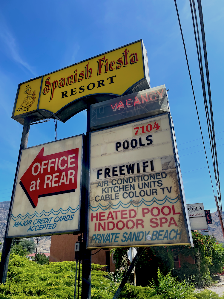 We also did the longer drive (50mins) into Osoyoos. Osoyoos is the southern most town in the Okanagan Valley, and Lake Osoyoos is partly in Canada and partly in the United States. It’s a resort town, known for it’s beach and is surrounded by vineyards and mountains. In the 1960s there was a boom in the tourist industry and with it, a series of motels were built, as we learned from a sign in this fabulous display in a downtown clothing store.