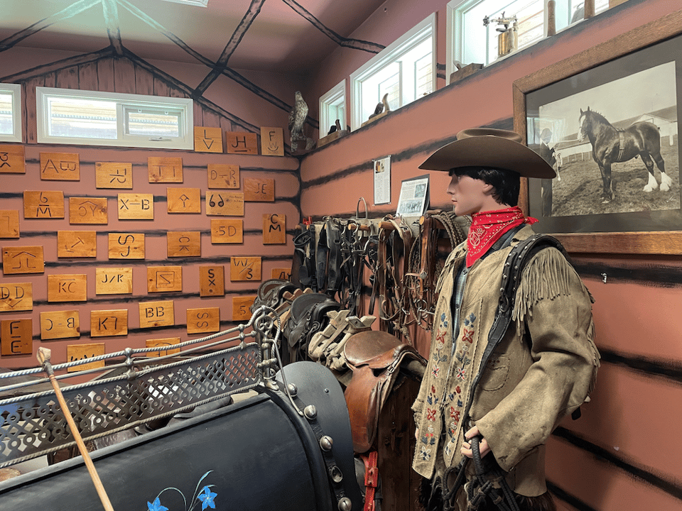This next photo doesn’t look like much, but it’s layers of plexiglass in a case and on the pieces of plexiglass are lines indicating the path through a local mine. The yellow bits are showing where copper was found and the layers are indicating the relative depth of the paths and copper deposits. It was pretty fascinating.