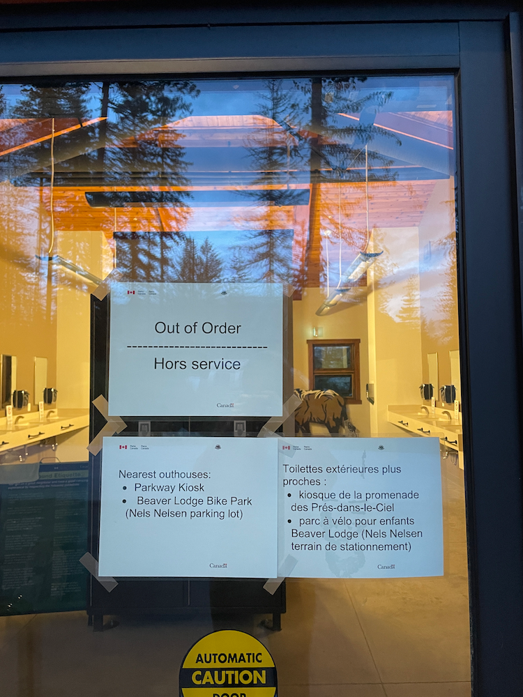 This brought new challenges for us. We hadn’t filled our potable water supply, because we were expecting to be connected to water at our site. There is no connection to sewer in provincial and national campsites so you have to really monitor your water usage so you don’t fill up your black or grey tank in the week you are there. (That means not using the shower in the RV and using other bathrooms as much as possible). They did bring in port-a-potties for everyone to use. We had to go into town to a dumping station to fill our blue jug with potable water every day for cooking, washing dishes and drinking water. By the time the water was turned back on Thursday afternoon, we were happier than usual to have a hot shower.