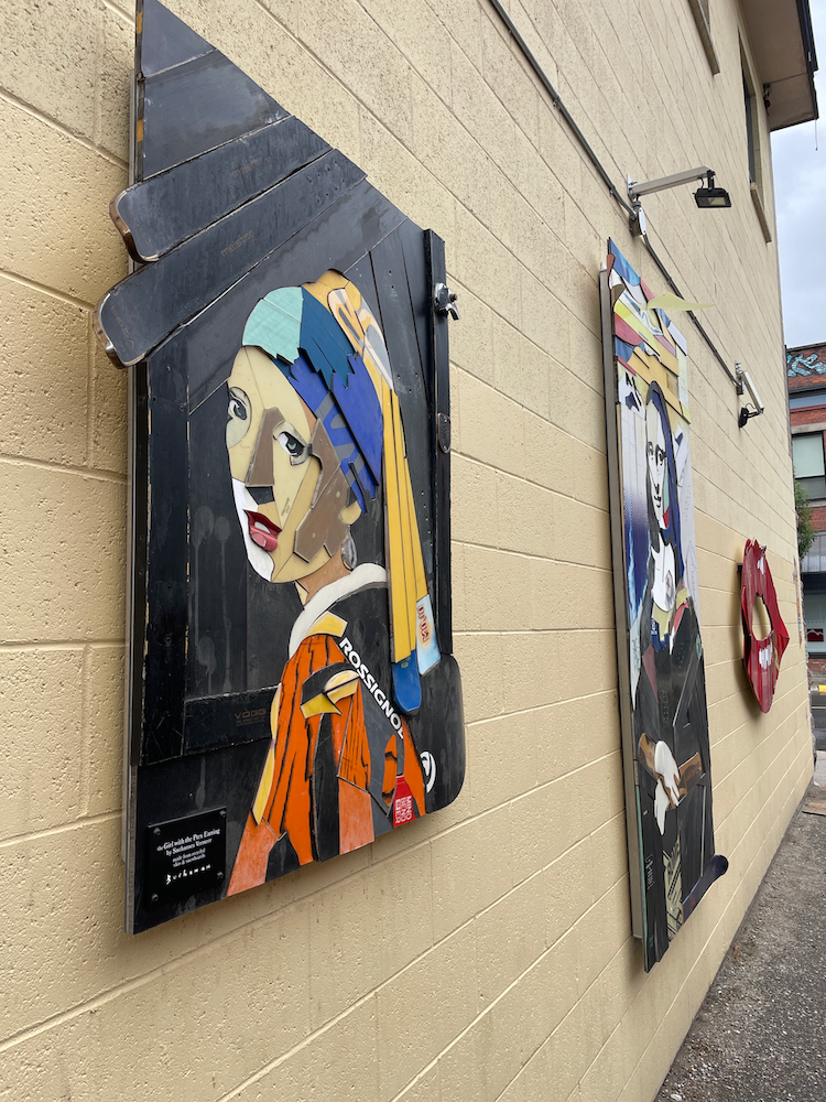 We stumbled across some really interesting street art in a alley. They recreated famous paintings using parts of skis, and snowboards.