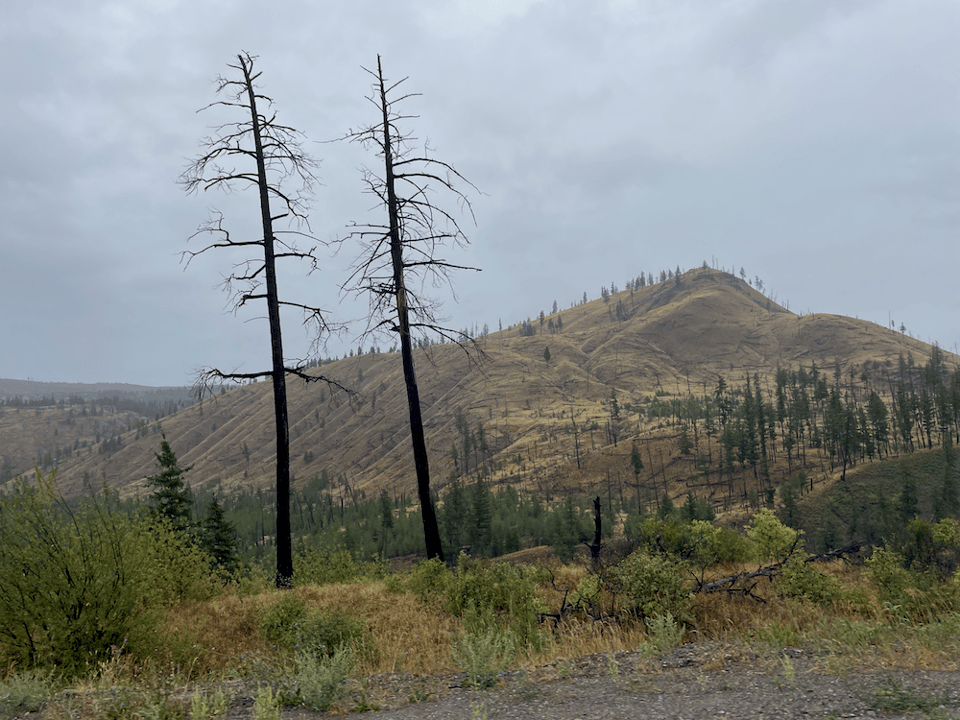 It turns out there was a fire in 2003, which is called the McLure Fire. It was a hot, dry summer, and it’s very clear in the Wikipedia article that the fire was started “when Mike Barre threw his cigarette butt into the grass on his property in McLure BC. The fire resulted in the loss of 72 houses, 9 businesses, and 180 jobs in the North Thompson Valley.” Seeing the landscape looking like this over twenty years later makes me realize what the recovery is going to look like for Jasper.