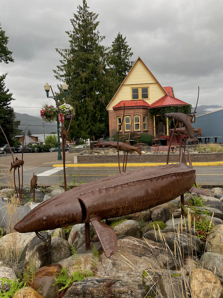 There are also various sculptures in the town, including this one of sturgeon and salmon: