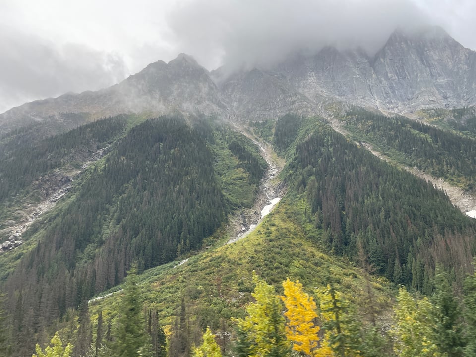 In Salmon Arm we stayed at the Salmon Arm Camping Resort. It was a nice little campground, complete with a mini putt golf course, but given we were only there for one night, we didn’t even unhitch the trailer from the truck. The next morning we hit the road for Canmore. On our way we drove through the lovely Glacier National Park, where I tried to get some photos out the window of the low clouds that were accompanying us on our drive that day.