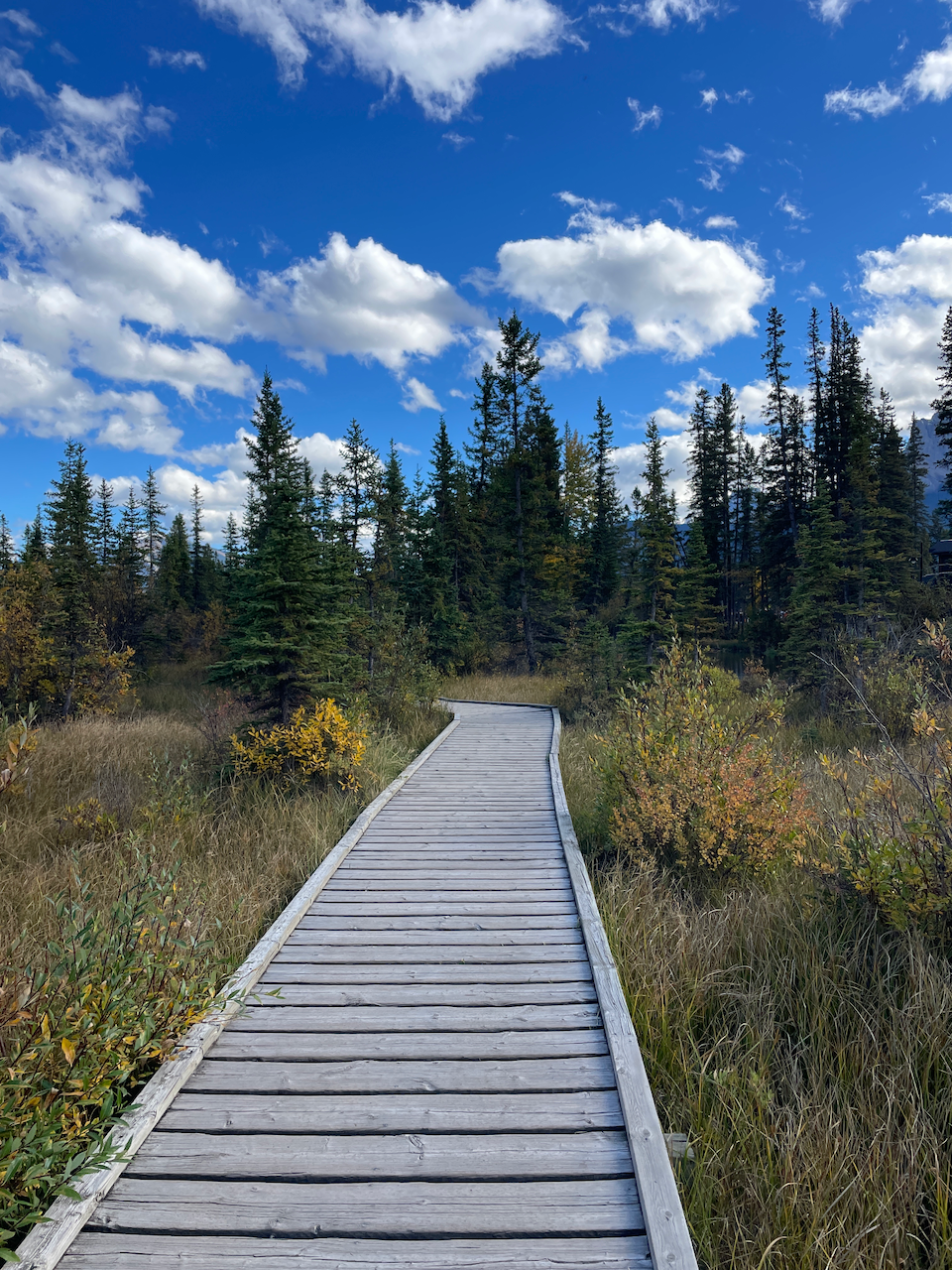 Canmore is a lovely little town, with a lot of gentrification happening on all of its edges, and has the lowest vacancy rate in Canada for rental properties. There is a lovely boardwalk, Policeman’s Creek Boardwalk, right downtown, that you can take to get a beautiful view of the Three Sisters.