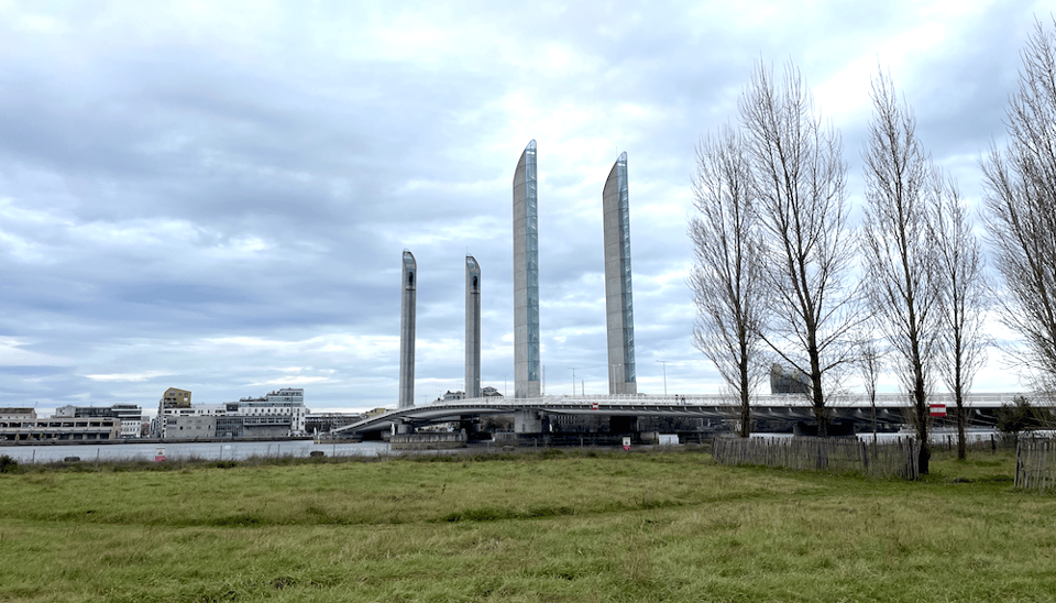 From there we walked over the Garonne River on the Pont Jacques Chaban Delmas. It is a stunning bridge, with a span of 575 metres, of which the middle 177 metres raise.