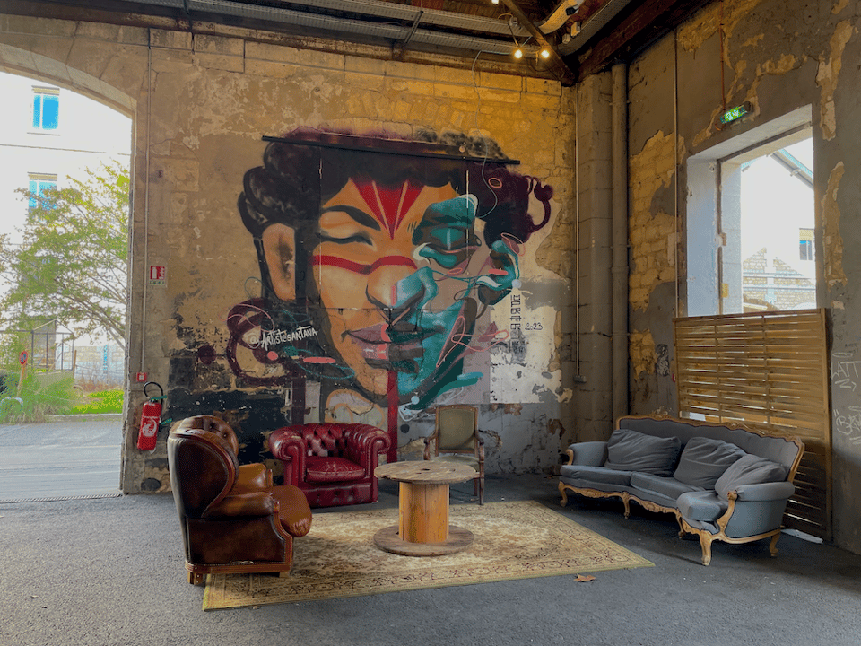 In crossing the Garonne, we made our way to a place called “Darwin”. It’s a community that has been created in former military barracks. It includes everything from a huge skatepark to a coffee roaster and café to a co-working space.