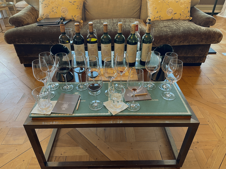 No one lives in the Chateau anymore. It is now used just for special functions and tastings. As a part of our tasting we were supposed to have: one of their “second” wines (the Sarget 2015) and then the 2015, 2009, 1996 and 1989. It was determined that the 2015 was not ready for tasting yet, so instead, they replaced the 2015 with a 2014 and a 2005.