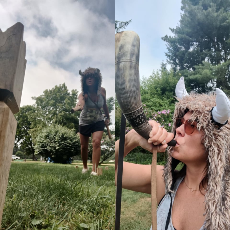 One of our favorite yard games is Kubb! This is not me in the action picture. It’s my friend Ashleh who is by far the most competitive of our Kubb enthusiasts.