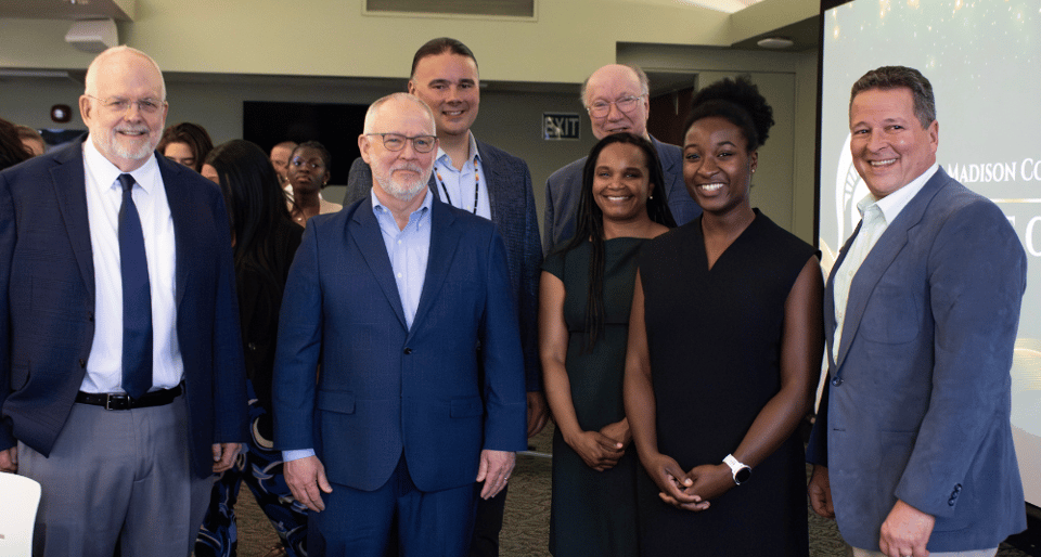 The James Madison College Alumni Association Board of Directors celebrated six recent recipients of Distinguished Alumni and Honorary Alumni Awards at JMC Parade of Honors in April. Three professors emerti and three Madison alums were honored at the event.
