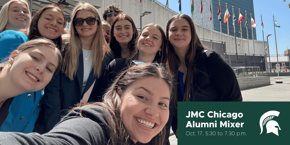 Chicago-based alums interested in connecting with students during the May 2025 Program are invited to attend an Alumni Mixer on Oct. 17 to learn more. Chat with representatives from the college about hosting a visit to your workplace and other opportunities to offer insights on the variety of career paths possible with a JMC degree.