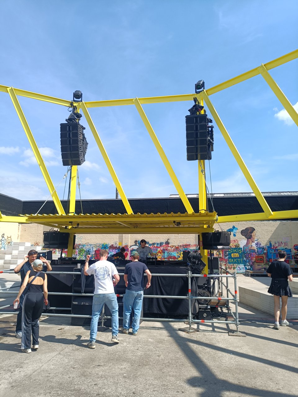 On arriving, I was met at the entrance by the head of the Artist Liaison team, which already felt like a luxury. Then at the artist welcome tent, one of the people behind the desk was my driver at new year when I puked on the ride back from Horst club into town. I guess that experience had brought us together, so when I spotted him it instantly put me at my ease. I chatted with him and a colleague at various points across the three days — in their day jobs one is a gardener and the other is a postal worker, then they give their spare time over to Horst. The artist team works 24/7 through the festival to make sure the artists feel at home and are on time for their slots. Their disposition is as sunny as the weather and if you read artists’ posts on IG you can see this hospitality translates into their performances.