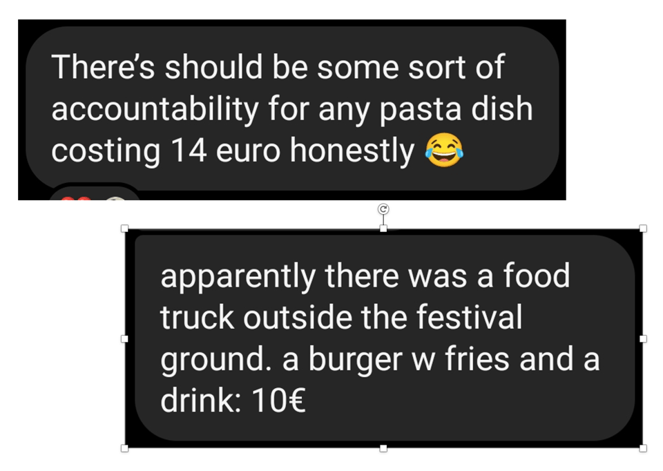Examples include 7.50€ fries, 12€ gin and tonic, and a 14€ mac and cheese with no toppings that almost ended a friend’s weekend on the spot. The mac n cheese feels like a watershed moment for the festival. Horst’s own #douchingstation.