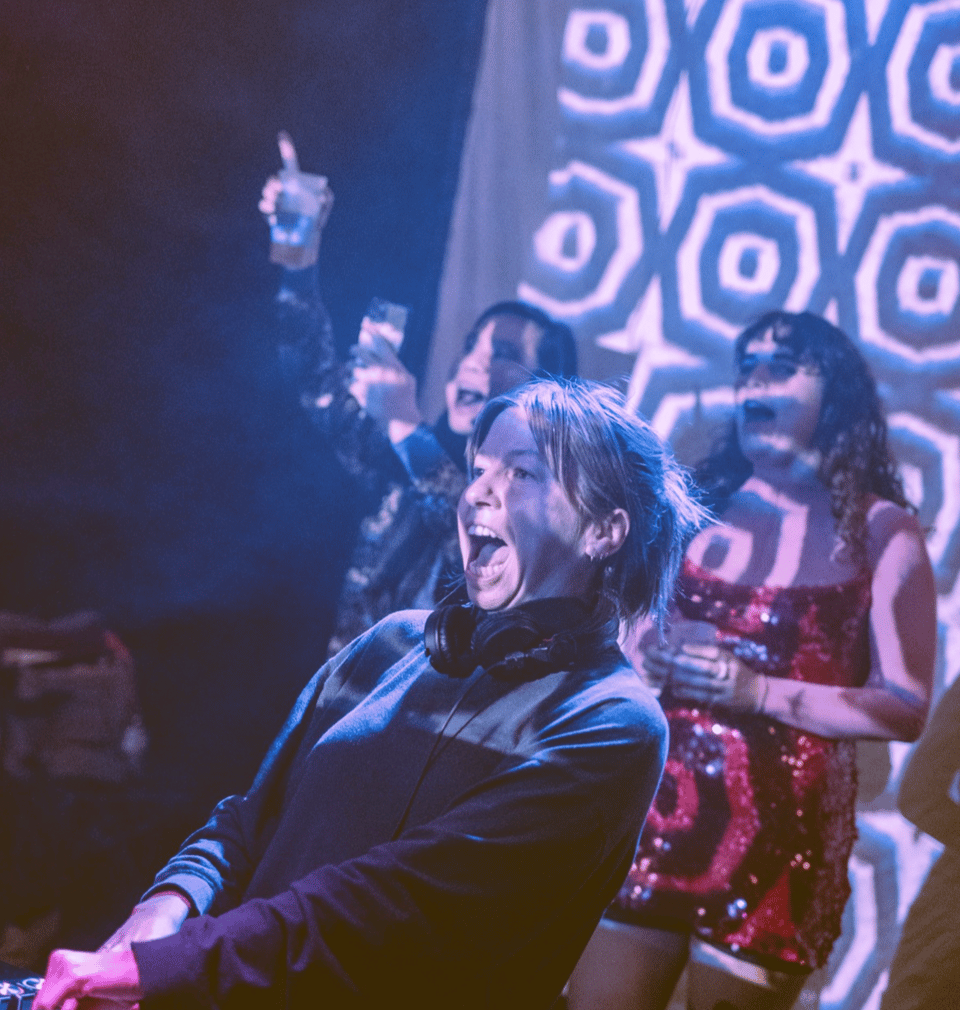 Anyway, all of this to say that Parabéns can be relied on for some seriously not-serious Sunday lunchtime fun. Within 10 minutes of arriving to this particular edition, chicken wrap in hand, I found myself explaining the entire plot of Hausu to a stranger who had just bought a haunted (or so I determined) cabin in Japan. Mid conversation I spotted Arroz founder Steven wandering past in a kilt. I ventured into the indoor area to find the latest Parabéns scenographic installation of fabric, tinsel, pool noodles and bubble wrap hanging from the ceiling, the bubble wrap tantalisingly within reach from the centre of the dancefloor. (By the end of the party it had been well and truly rinsed.)